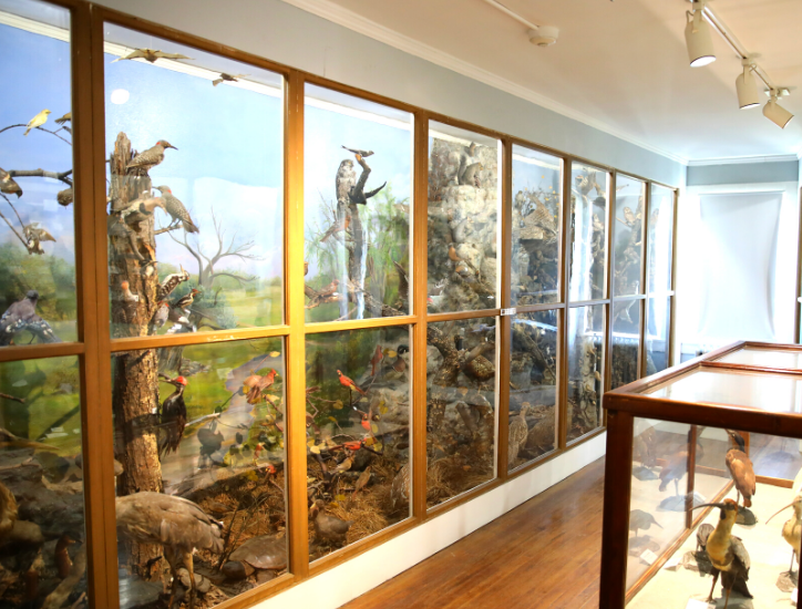 Today, the collections throughout the three floors of the Woodman House are arranged into galleries displaying natural science (mounted specimens, rocks and minerals, fossils, seashells), Native American culture, military history, “childhood” history (schools, Scouting, toys, games and dolls), seasonal themed exhibits and more.